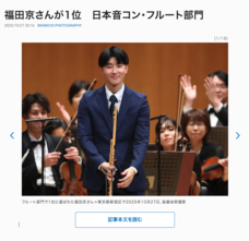 音楽領域卒業生 福田京さんが「日本音楽コンクール」フルート部門で第1位を受賞しました