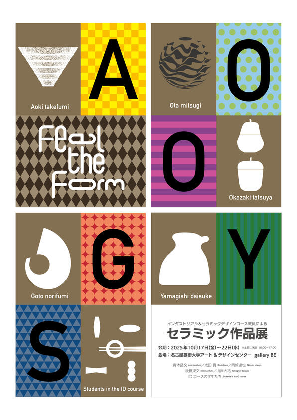 名古屋芸術大学 西キャンパス Art & Design Center Westでは2025年10/17(金)〜10/22(水) 『Feel the Form インダストリアル&セラミックデザインコース教員によるセラミック作品展』を開催します。