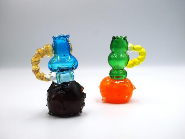 吹きガラスで生まれる色と形のリズムをテーマにしている。