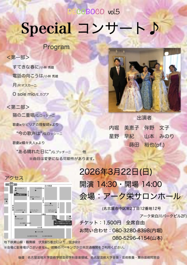 2026年3月22日(日)、「DECOBOCO vol.5 Special コンサート ♪」が、アーク栄サロンホールにて開催されます。