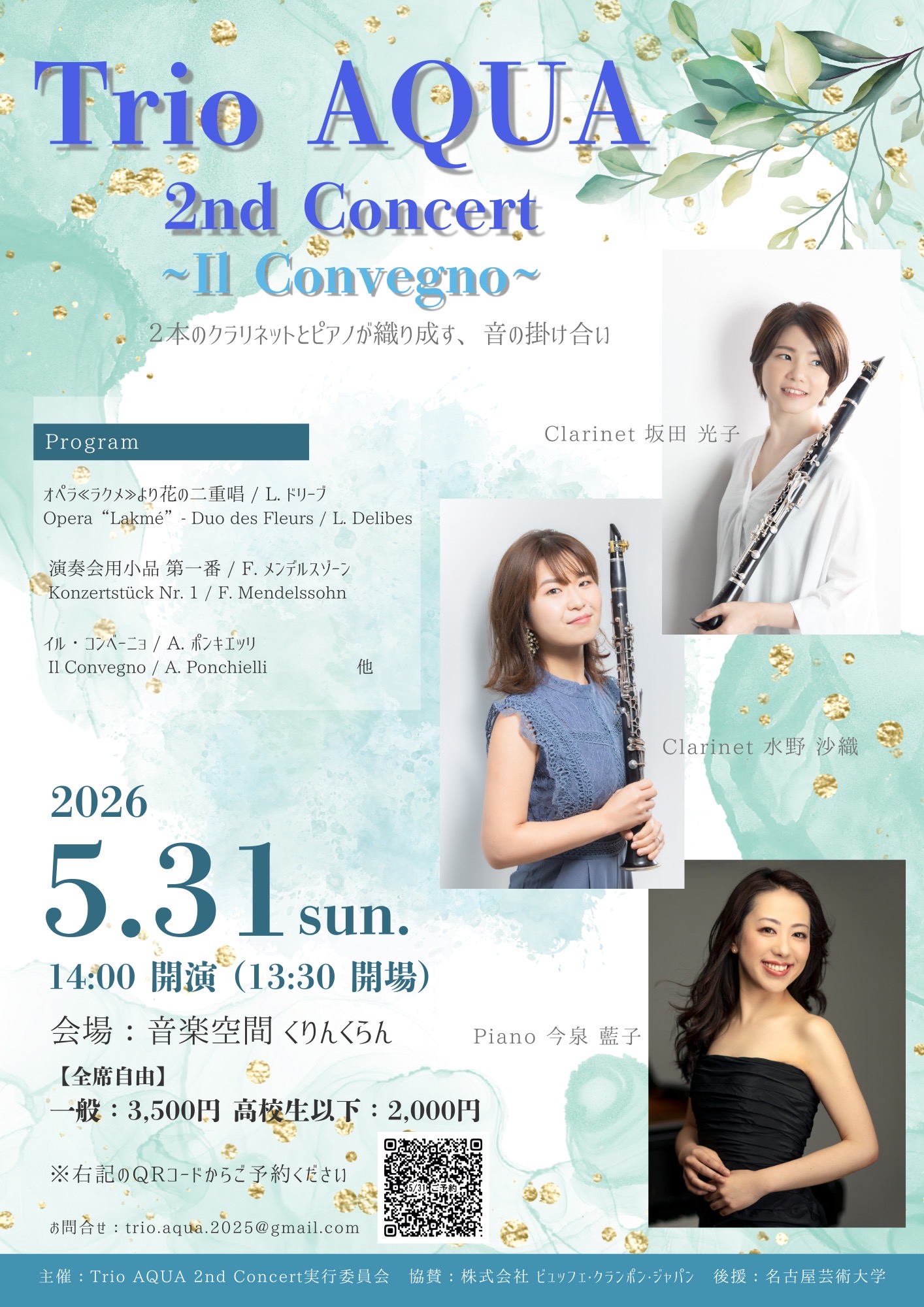 2026年5月31日(日) 「Trio AQUA 2nd Concert ~Il Convegno~」のご案内