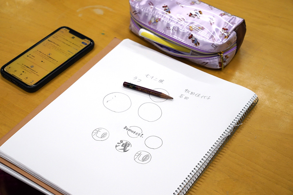 この後、ブランド名を決めるディスカッションを行い、大人っぽさやシックなイメージの「Varigent」(various、gentleなどからの造語)、落ち着きや自然や四季を連想させる「木洩レ日」に、それぞれのブランド名を決定しました。名前から触発されるイメージの良さやロゴなどの展開を予感させるブランド名に扇教授も村瀬氏も大いに満足、この後の展開に一層期待が高まりました。続き、それぞれのグループで店長を2名ずつ選出、ロゴのアイデア出しを行い、SNSで発信するために150文字程度でブランドのコンセプトを紹介する説明文を考えました。