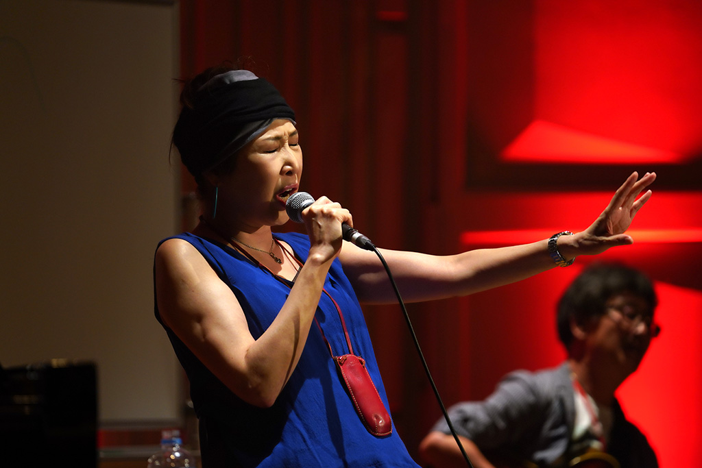 講義の最後に、平手裕紀さんのピアノとのデュオでセロニアス・モンクの「'Round Midnight」を披露。深く重い声の響きはさすがで、会場もうっとりと聴き惚れます。もう一曲、前向きな明るい曲をということで1965年のミュージカルの楽曲でスタンダードとなっている「On A Clear Day(You Can See Forever)」を歌い、特別公開講座は終了となりました。レッスンを受けた学生も、聴講に訪れた方々も音楽を楽しみ、大いに満足した公開講座となりました。