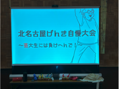 午後の部では、松下梨紗子(まつした りさこ)さんが企画した「北名古屋げんき自慢大会~芸大生には負けへんで!~」を開催。地域の高齢者の方を対象とした体力測定イベントで、新体力テスト(65歳~79歳用)を用い、学生と参加者が同じグループとなり協力しながら測定を行いました。
