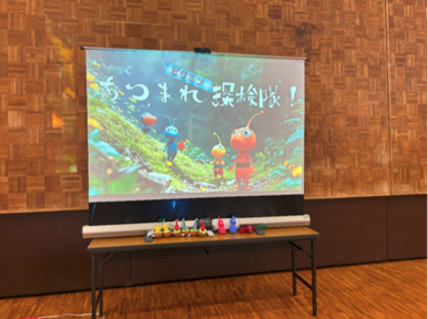 午前の部では、ゼミ生の小林智哉(こばやし ともや)さんが企画した「あつまれ 探検隊!」を実施。地域の子どもたちを対象に、テレビゲームの世界観をモチーフにした運動遊びを通して、イメージを膨らませながら体を動かす楽しさを体験してもらいました。