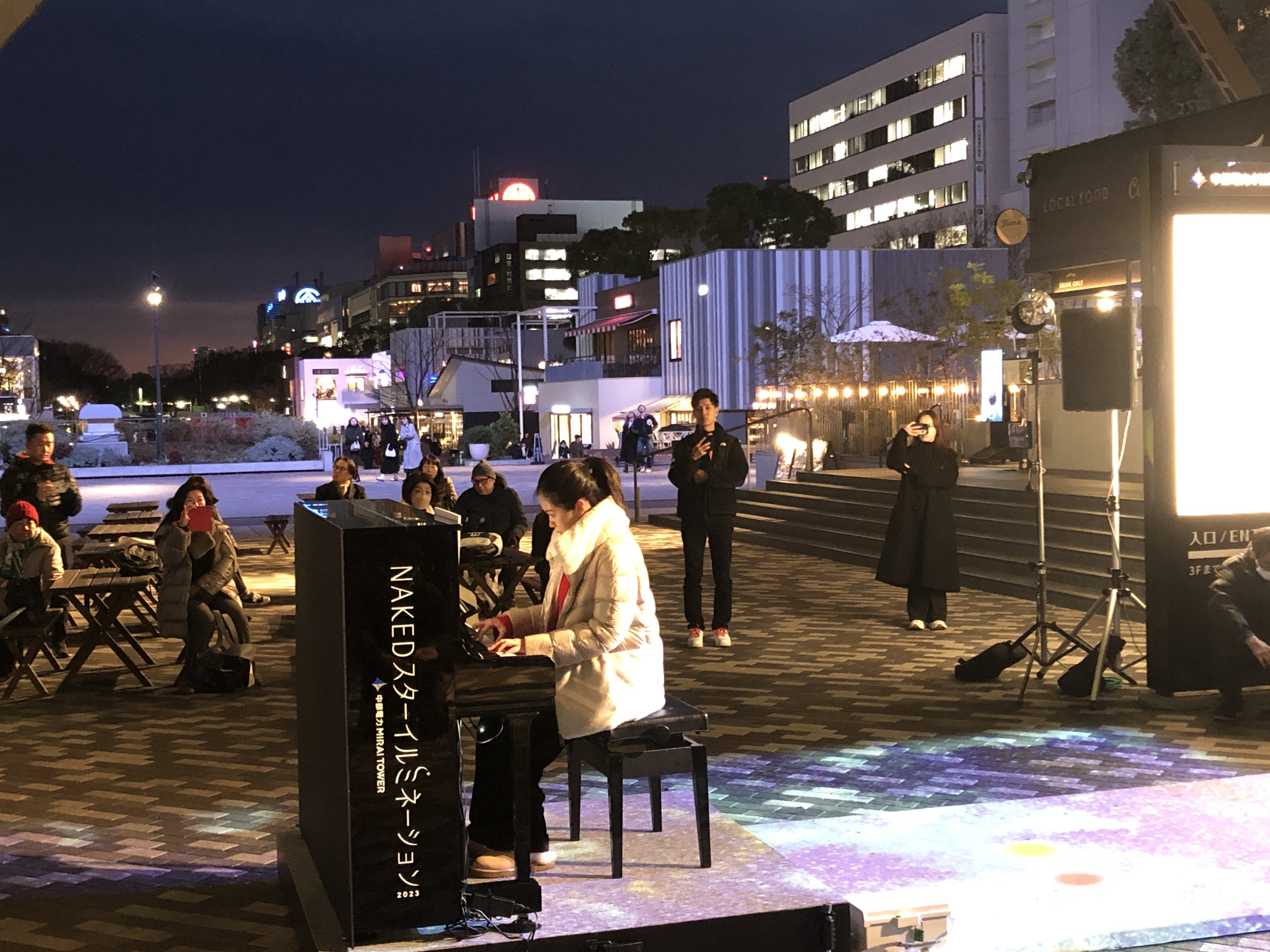 音楽領域プロフェッショナルアーティストコース1年の榊原さんが中部電力 MIRAI TOWER1階広場で音と光のアートが連動するストリートピアノのオープニングアクトとして演奏しました!