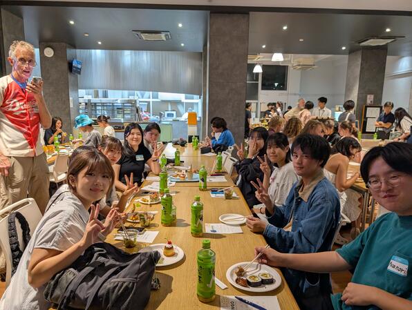 2025年10月8日(水)、本学西キャンパス食堂にて「Welcome Reception」を開催しました。本イベントでは、Andy & Joyce先生と交換留学生を迎え、学生と教職員の交流を目的として行われ、総勢約38名が集まり、世代や国籍を超えた交流の場となりました。
