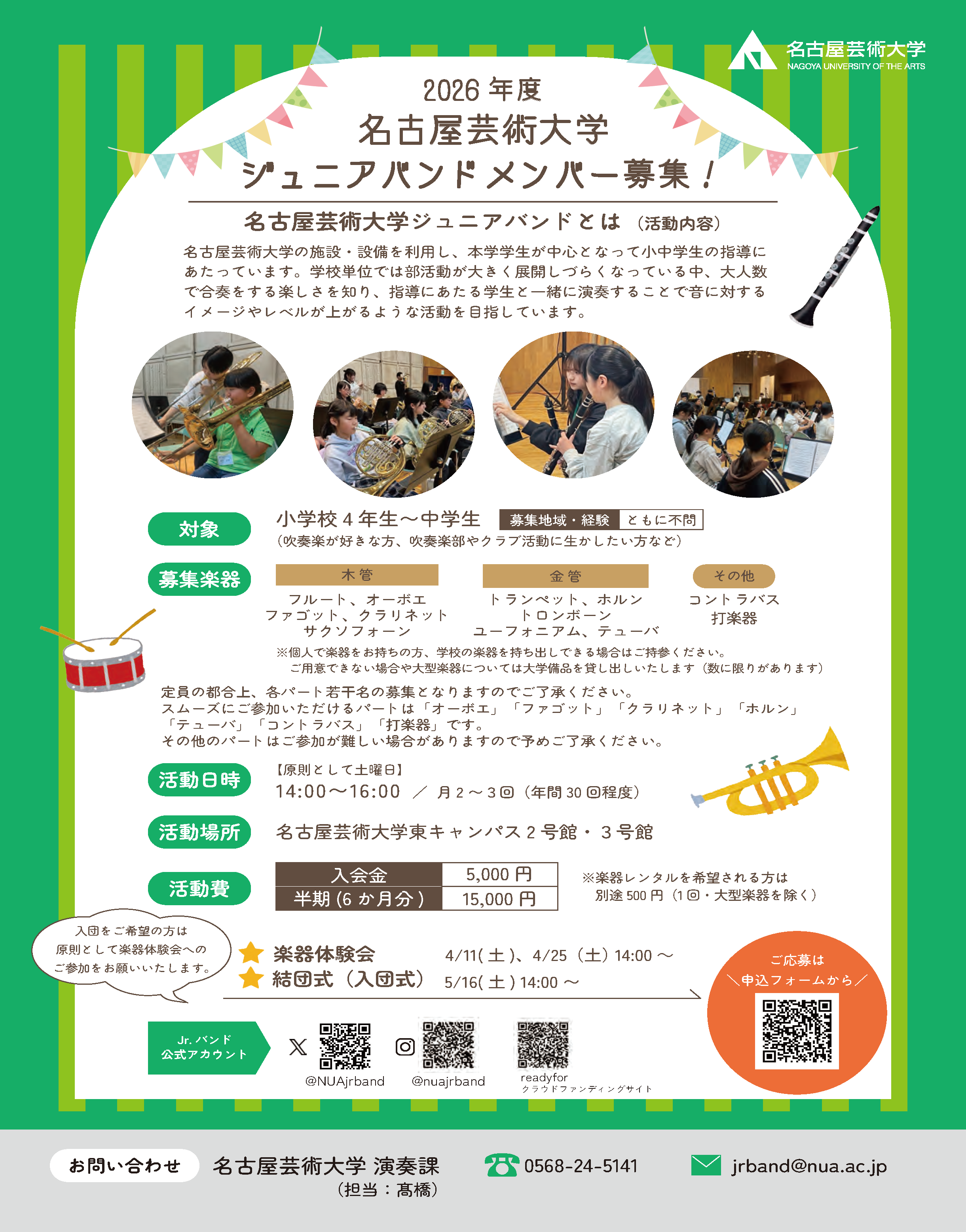 2026年度 名古屋芸術大学ジュニアバンド メンバー募集のお知らせ