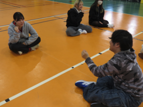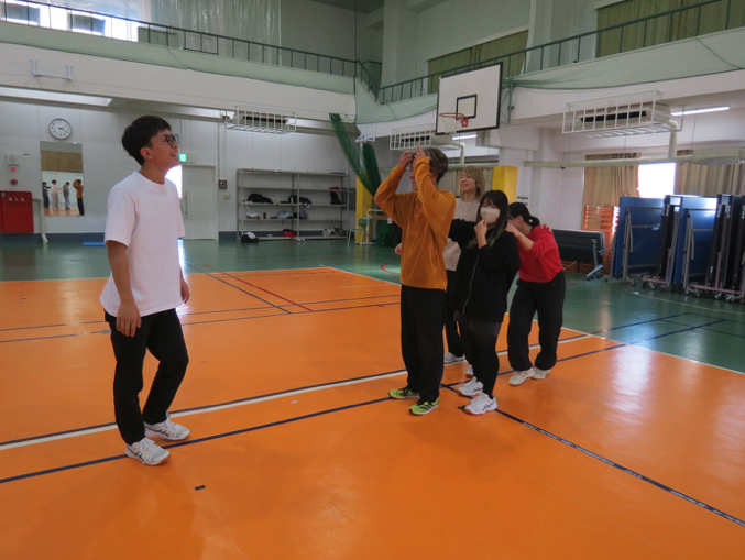 初めは「2人同士」から「グループで」、そして「クラス全体で」をイメージして段階を踏んで指導が行われました。