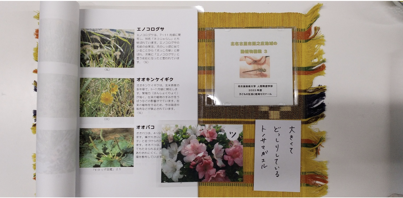 小学校教育コースの学生は、2年次の基礎演習で大学周辺の動植物を調査し、「図鑑(冊子とCD)」を制作しています。