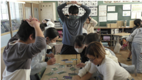 今回は5年生のみの参加ということもあり、白熱した取り合いが随所で見られ、子どもたちが真剣にカードを狙う姿に、制作した学生たちも大きな手応えを感じていました。