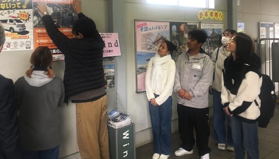 2026年3月19日(木)、この日は名古屋芸術大学が立地する北名古屋市を管轄とする西枇杷島警察署と皆さんと本学在学生と共同で、過去に起きてしまった大事件を風化させることのないよう啓発するポスターを、管轄する駅構内に貼るという企画を実施しました。