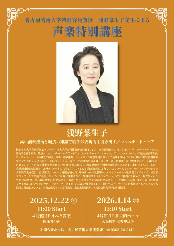 浅野菜生子先生による 声楽特別講座