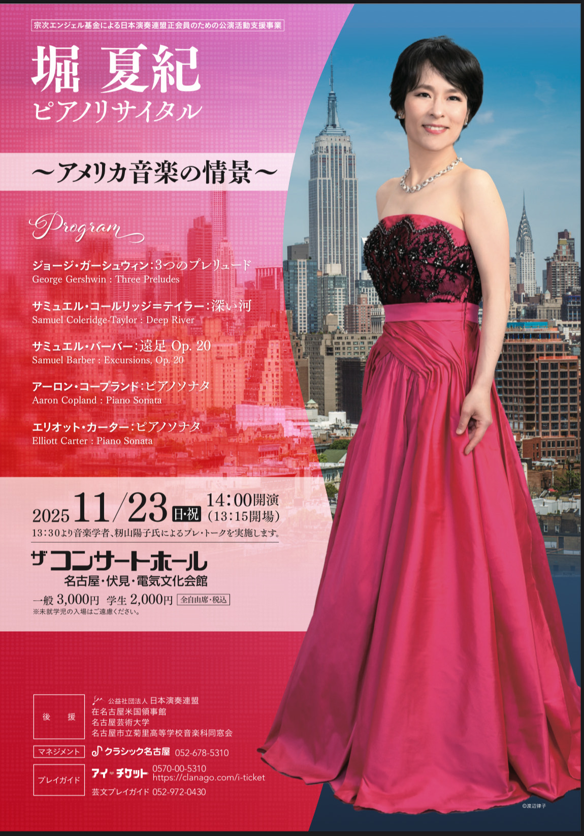 2025年11月23日 堀 夏紀 ピアノリサイタル「アメリカ音楽の情景」のご案内
