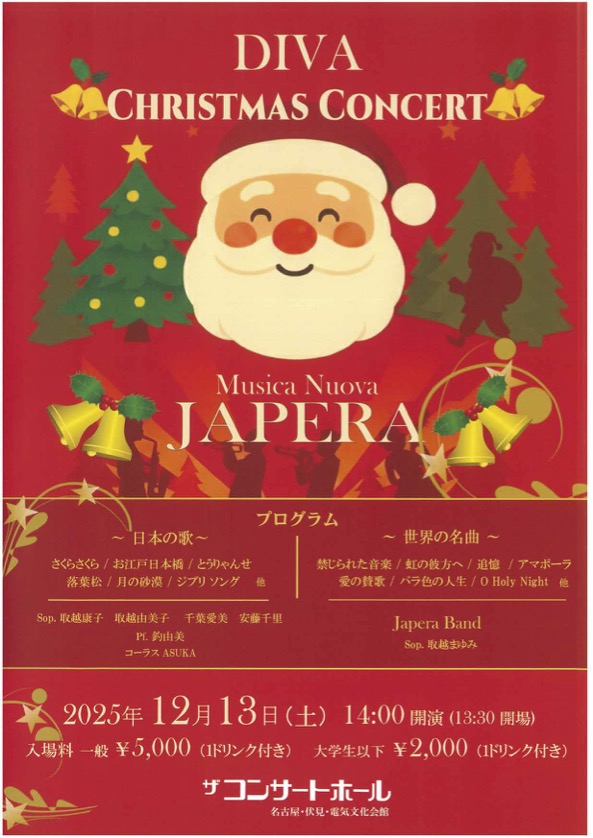 2025年12月13日(土) DIVA Christmas Concert「Musica Nuova JAPERA」開催のお知らせ