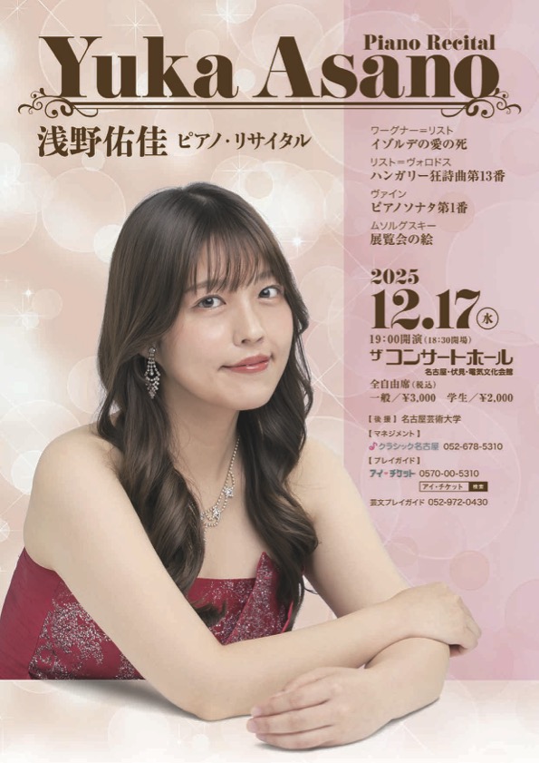 2025年12月17日(水)「浅野佑佳 ピアノリサイタル」開催のお知らせ