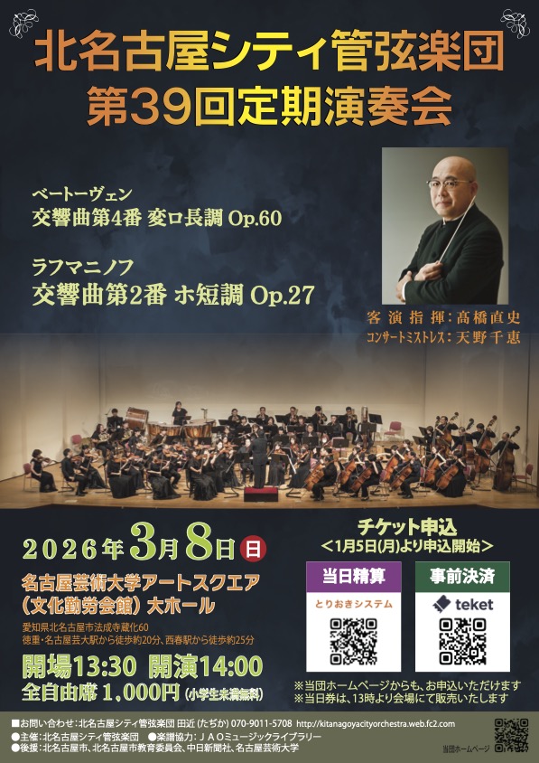 2026年3月8日(日) 北名古屋シティ管弦楽団 「第39回定期演奏会」のご案内