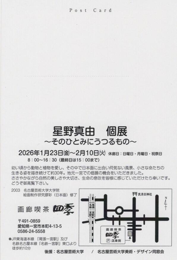 2026年1月23日(金)〜 2月10日(火)「星野真由 個展 〜そのひとみにうつるもの〜」のご案内