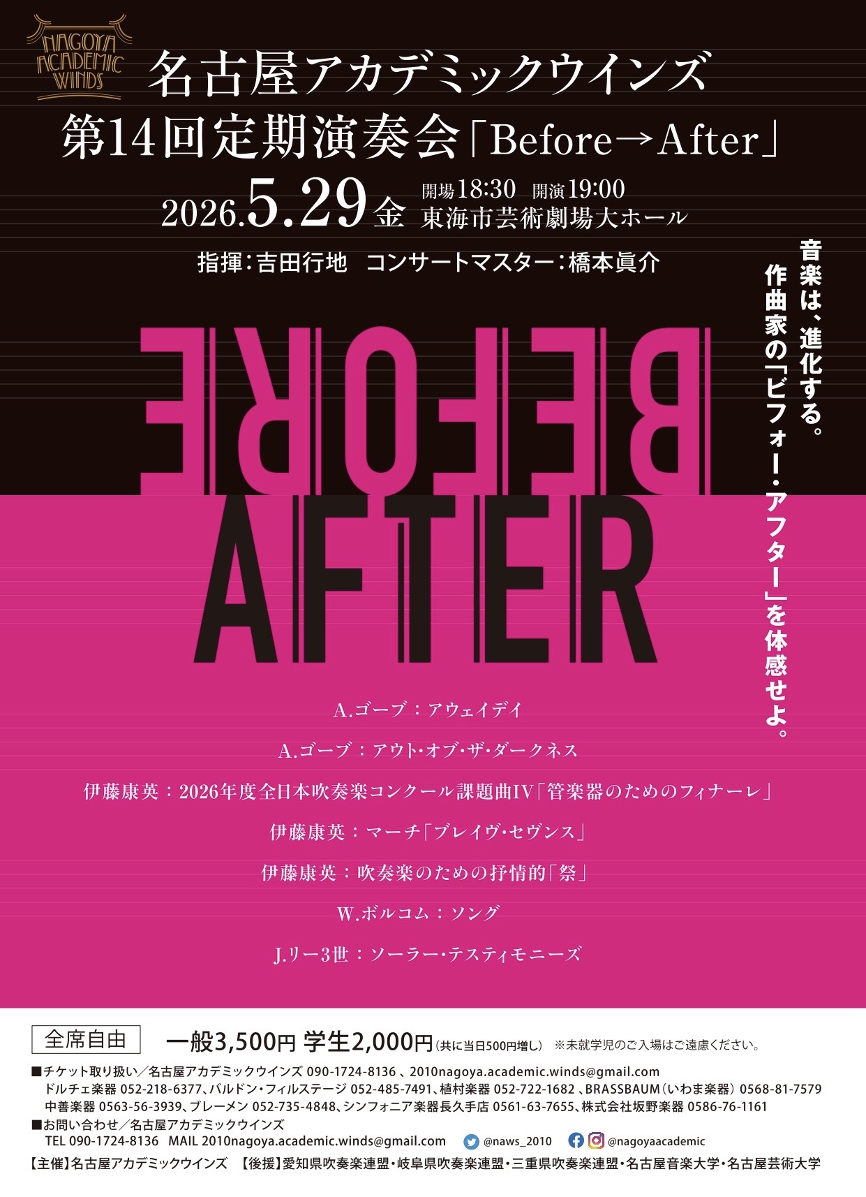 2026年5月29日(金) 「名古屋アカデミックウインズ 第14回定期演奏会「Before→After」」のご案内