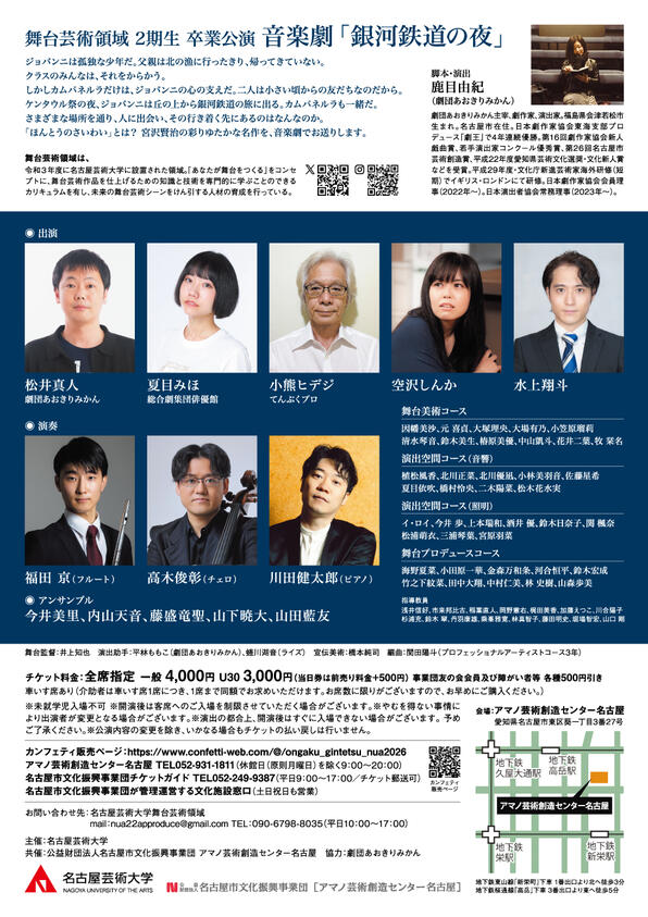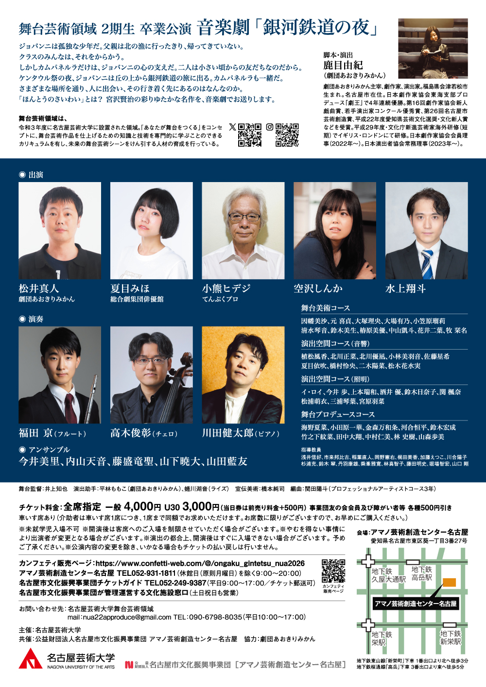 名古屋芸術大学 舞台芸術領域2期生 卒業公演 音楽劇『銀河鉄道の夜』の案内