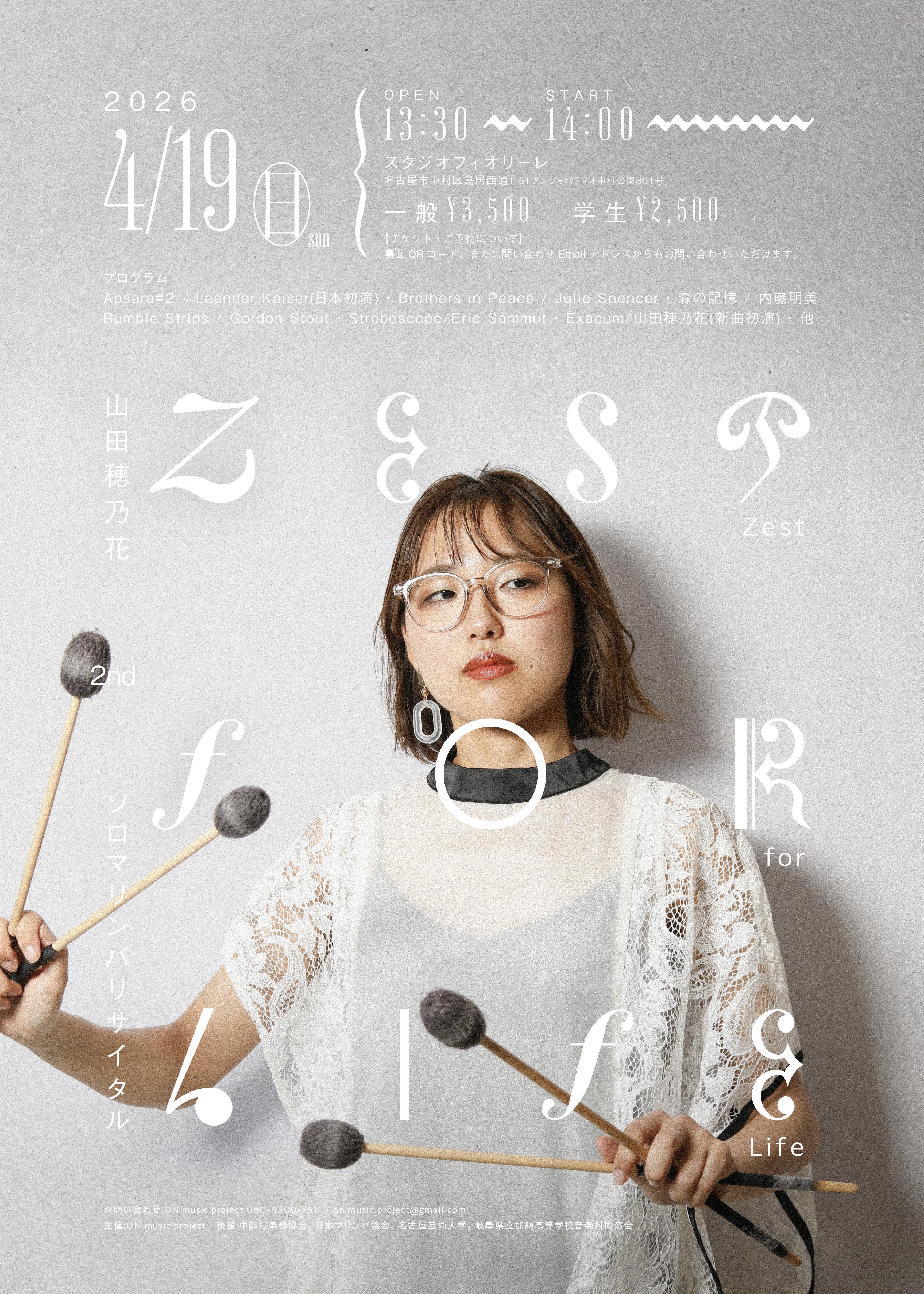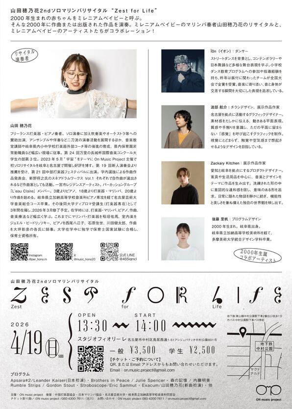 山田穂乃花 2ndソロマリンバリサイタル「Zest for Life」開催のお知らせ