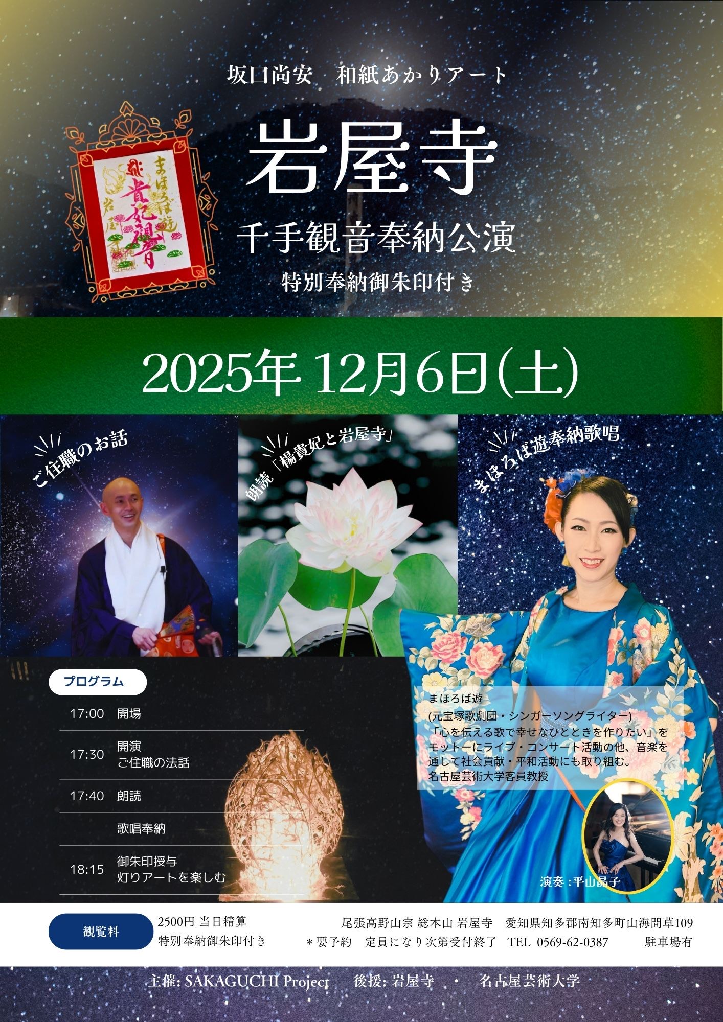 尾張高野山宗総本山岩屋寺 「千手観音奉納特別公演」開催のお知らせ