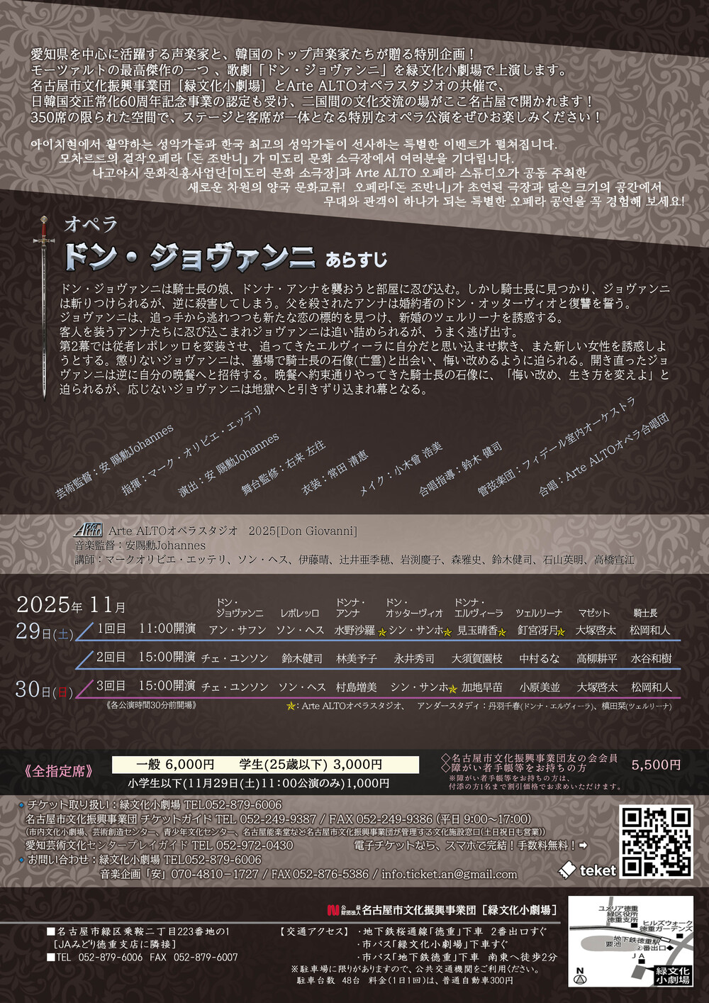 『ドン・ジョヴァンニ』が、名古屋市緑文化小劇場にて上演されます。