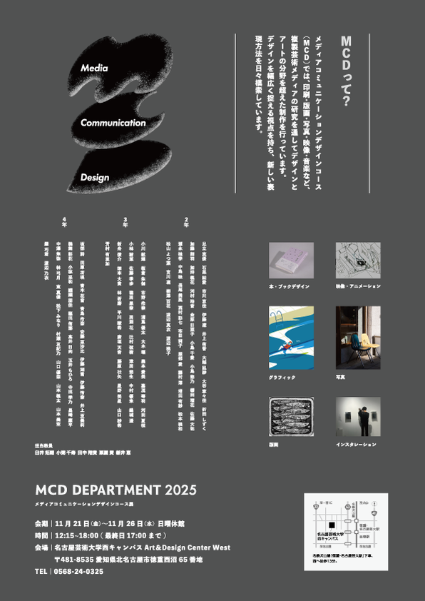 名古屋芸術大学 西キャンパス Art & Design Center Westでは2025年11/21(金)〜11/26(水) 『MCDデパートメント』を開催します。