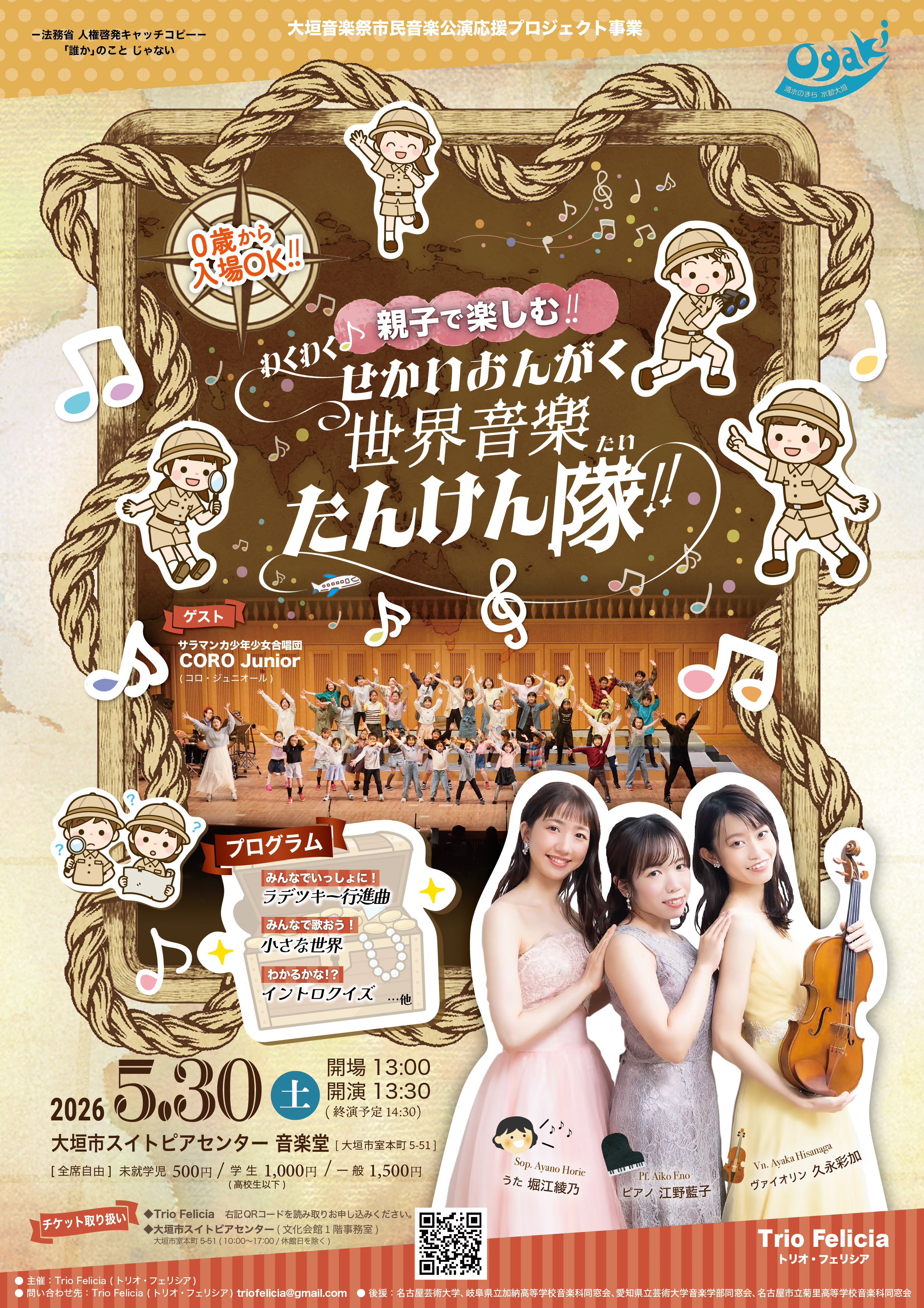 0歳から入場OK!親子で楽しめる参加型コンサート「わくわく♪せかいおんがく 世界音楽たんけん隊!!」を開催します。
