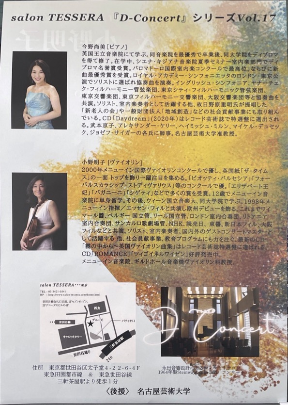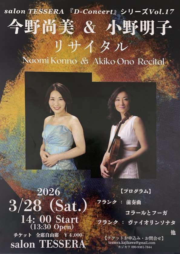 salon TESSERA「D-Concert」シリーズ Vol.17 『今野尚美 & 小野明子 リサイタル』のご案内