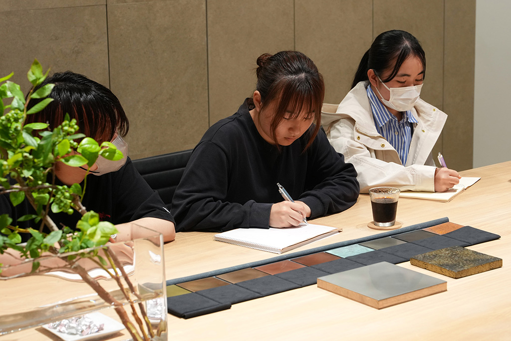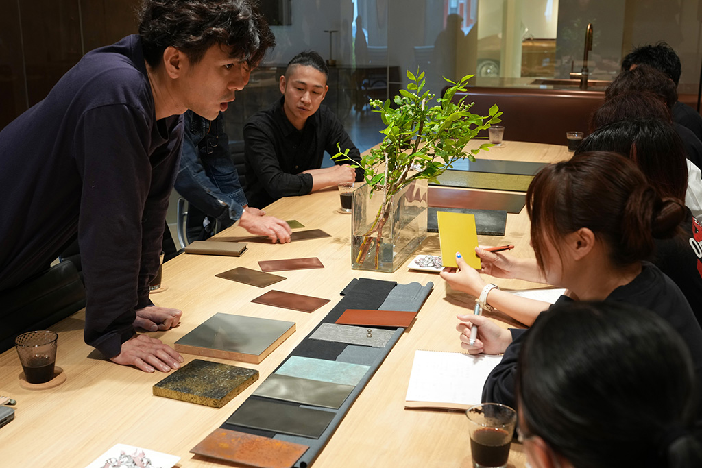 ショールームには、メタルサーフェス技術で仕上げられた家具、キッチン、トイレ、車などが展示されており、学生たちからは驚きの声が上がりました。