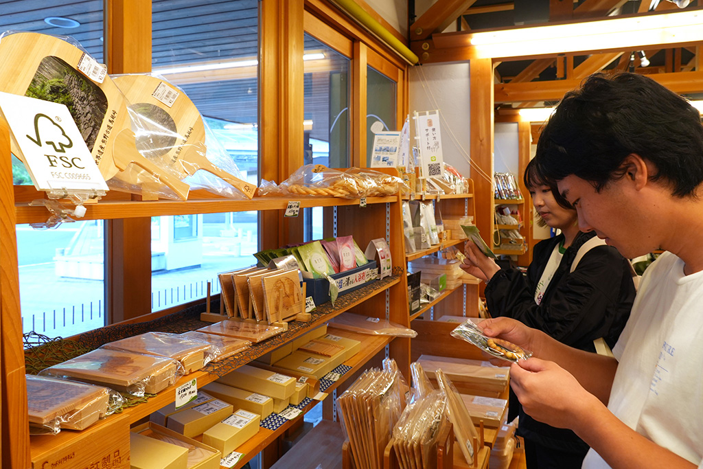 帰路には紀勢自動車道 紀北PA「始神テラス」に立ち寄り、FSC認証製品が実際に販売されている様子を見学。国際認証が日常の買い物に息づいていることを実感できたのも大きな収穫でした。