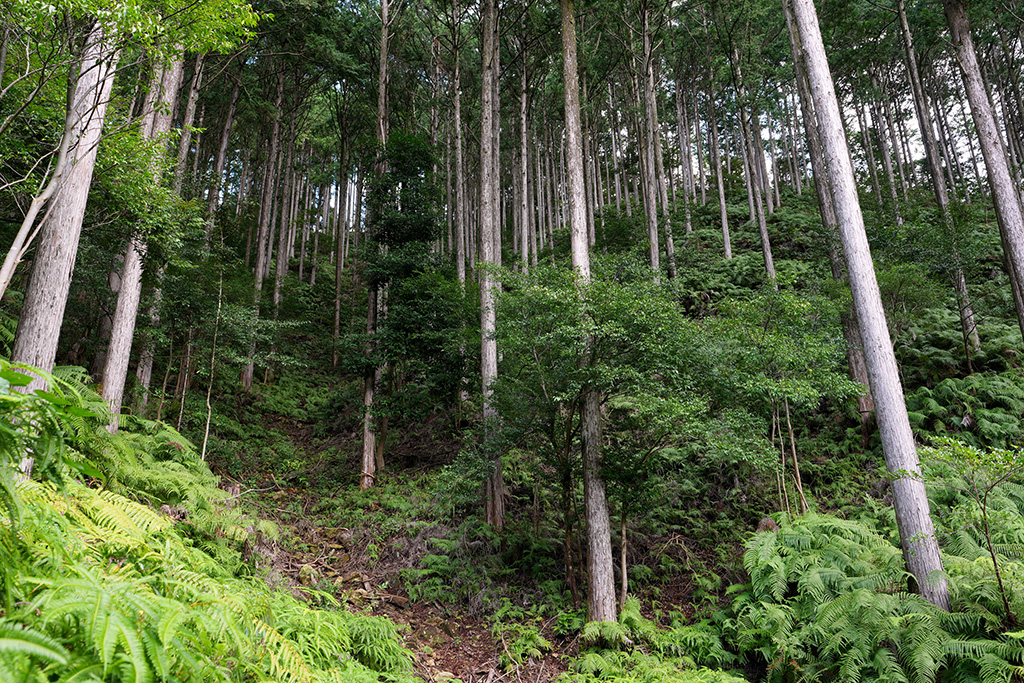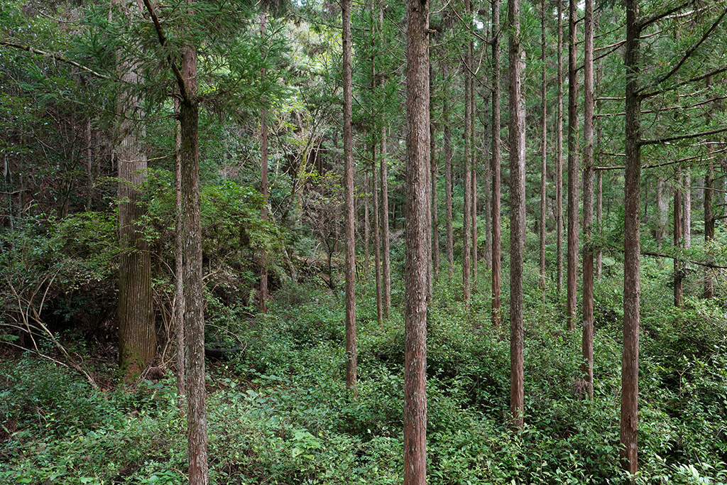 速水林業は2000年に、日本で初めてFSC認証を取得した林業事業体です。戦後の拡大造林期に広がったスギやヒノキの単一植林に対し、いち早く広葉樹を混ぜる「針広混交林施業」を実践。土壌を守り、生態系の多様性を維持する森林づくりを進めてきました。いま日本で多く行われている超高密度の作業路を作らず、ワイヤーで木を搬出するなど環境負荷を最小限に抑える工夫も徹底しています。こうした取り組みは国際的にも高く評価され、速水林業は持続可能な林業のモデルケースとして国内外から注目を集めてきました。
