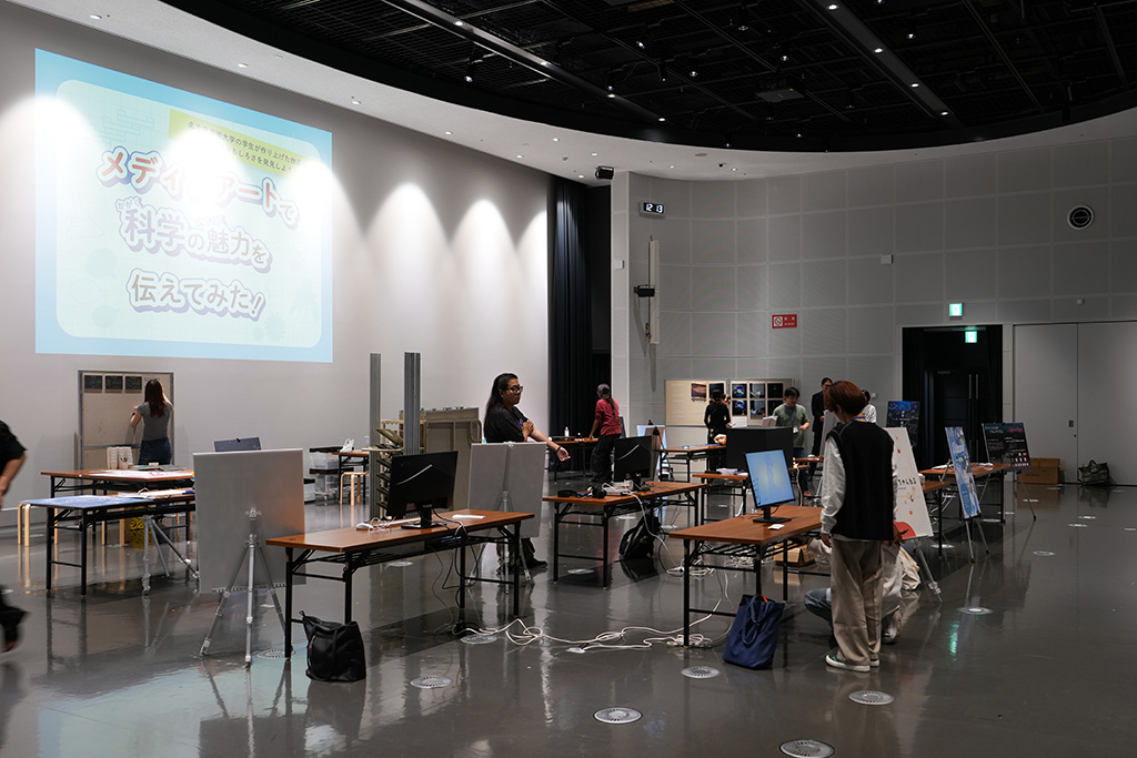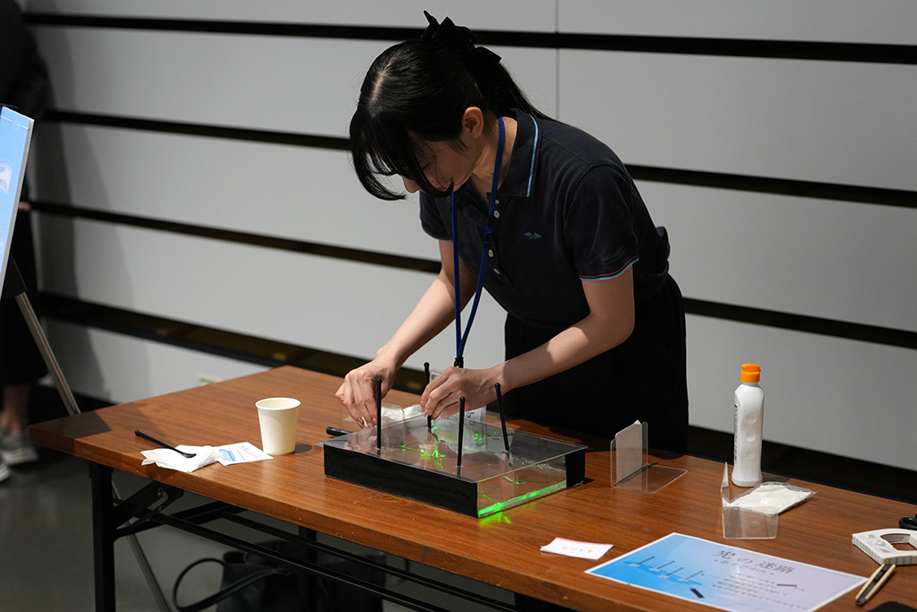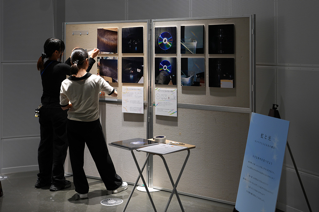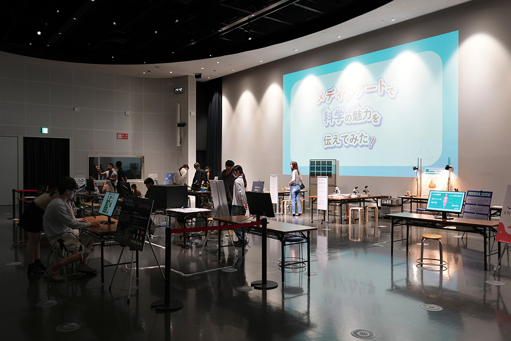展示を担当した加藤良将講師は「今年はコンピューターを使ったデジタル作品だけでなく、立体的な作品や、手を動かして体験できる作品が多かった印象です。ワークショップ形式のものも増え、子どもたちが家でもやってみたいと思えるような内容になったと思います。毎年、学生たちには方向性を指示せず主体的に制作してもらっていますが、今年は特に“科学をどう伝えるか”をそれぞれが考え、身近で分かりやすい表現に仕上げてくれました」と振り返りました。