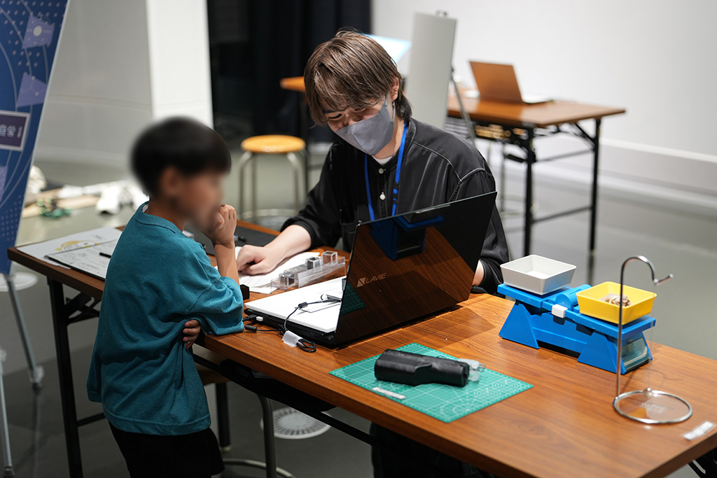 会場には、プログラミングを用いたゲームや、身体を使って楽しむアトラクションなど、学生たちの自由な発想から生まれた作品が並びました。どの作品にも共通していたのは、「科学を難しいものではなく、触れて感じられるものにしたい」という思いです。
