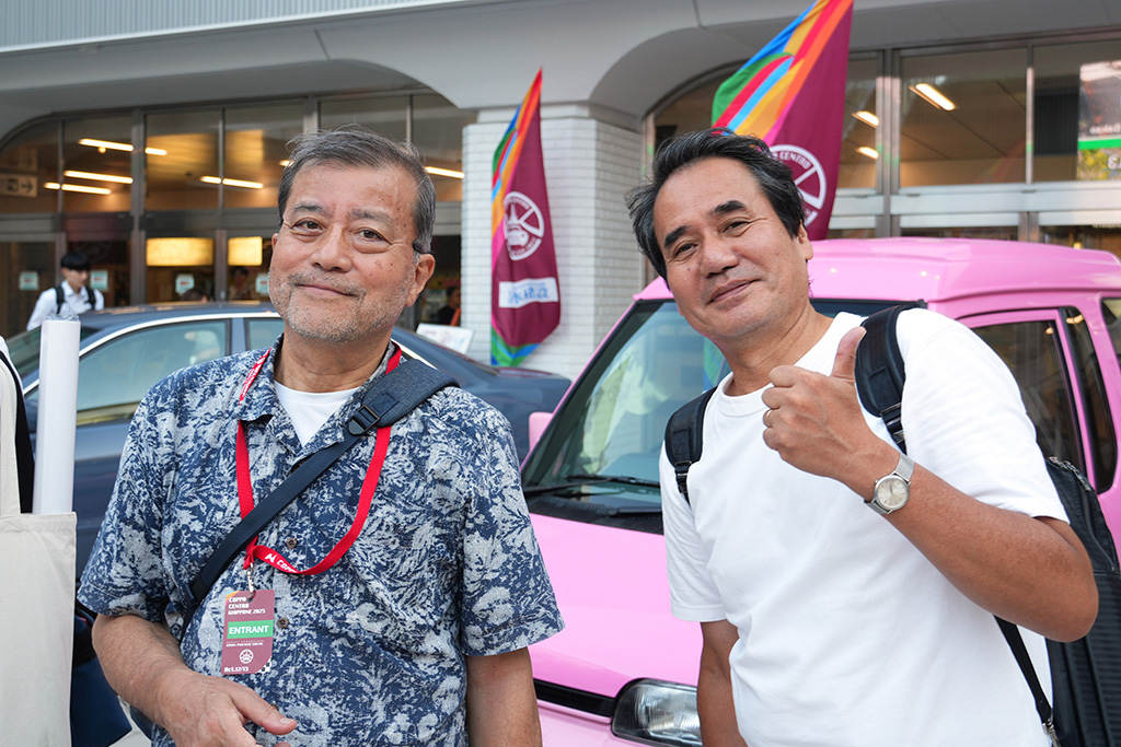加藤嵩太さんは、「歴史あるクルマに貼ることを想定し、悪目立ちしない落ち着いた色味にしました。オーナーの方に“このクルマに合う”と思ってもらえるよう、くすんだ色合いを意識しました」とデザインへのこだわりを語りました。