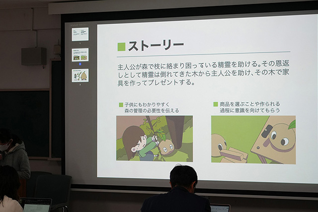 「本当にお疲れさまでした。アニメもあればマンガもあり、キャラクターやCMのようなもの、小説まである。こんなにも“伝え方”の選択肢があるのだと、改めて感じました。森林を取り巻く課題や問題は、言葉だけで説明しようとするとどうしても難しいテーマです。しかし、こうした媒体を通すことで、何も知らない人にも伝えられる可能性がある。まだ完成していない作品もありますが、ぜひ完成させてほしい。完成したものはぜひ見せてください。必ず社会の役に立つ作品になると思います」
