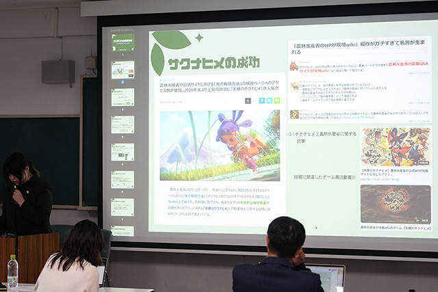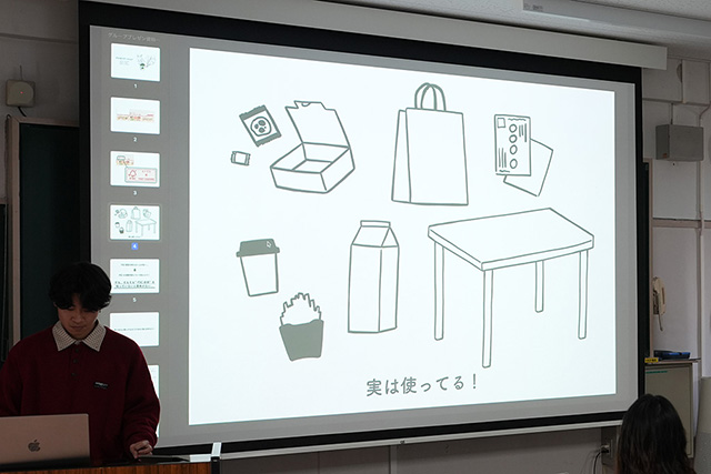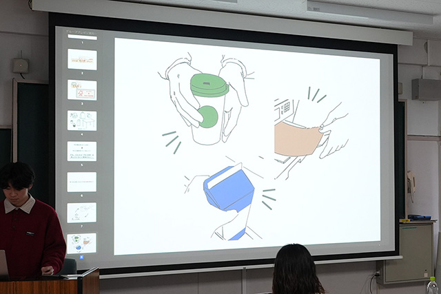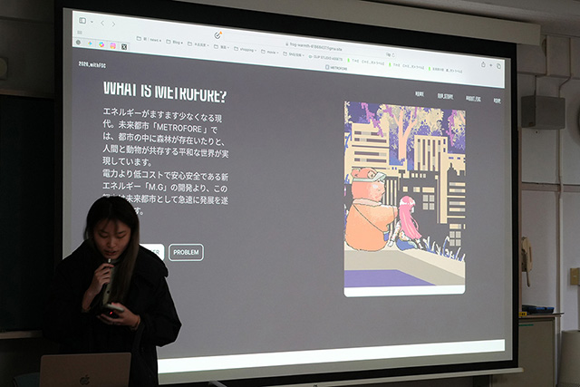 授業を担当した谷川司助教は、学生たちが1年次から積み重ねてきたプロセスを踏まえ、「今日の発表には強い感動を覚えました」とコメント。ナカノ准教授も「プレゼンテーションを通して、人に伝えようとする意志がはっきりと感じられました」と締めくくりました。
