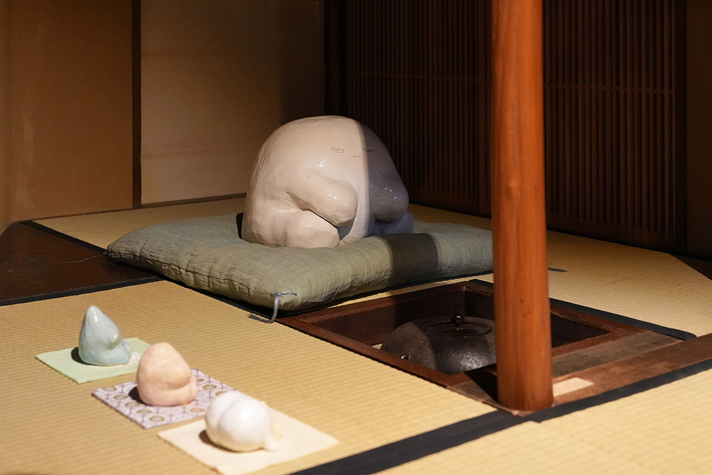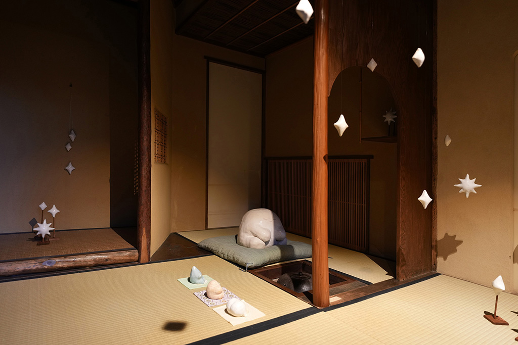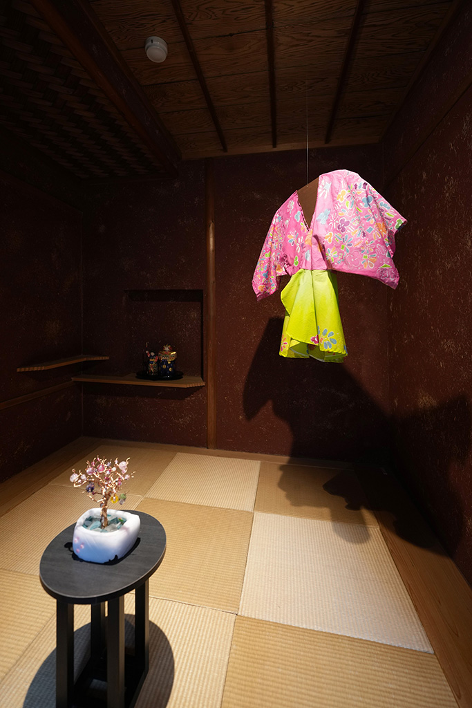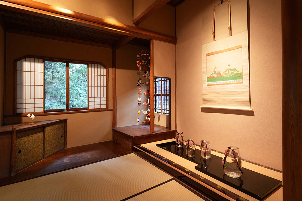 古川美術館プロジェクトを4年にわたって担当してきた古川美術館学芸員早川祥子さんは、今回の展示、そして『メイゲイのコウゲイ』のこれまでの取り組みにについて、「爲三郎記念館で展示をするということの意味をより深く考えてもらうために、季節に合わせた雛や桃の節句といった古川美術館の所蔵品も展示しました。季節のテーマを設けたことは、ある意味、作品の構想について制限となったかもしれませんが、その一方で、日本の伝統的な建築空間の床の間の意味、茶室の機能についても今まで以上にしっかりと考えるきっかけとなったのかなと思います。同時に自分の取り組む技法や表現を駆使して、いかに桃の節句や雛の節句と、爲三郎記念館の魅力、そして自分の作品としての個性を融合させられるかを、工夫するきっかけにもなったのではないかと感じています。