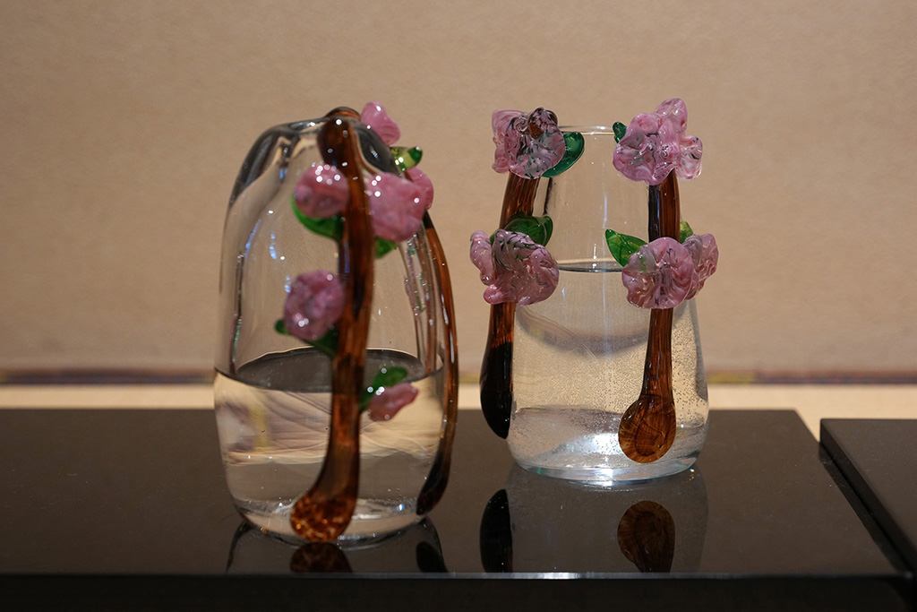 古川美術館学芸員の小栁津綾子さんは、これまでの取り組みを振り返りながら、「今までの展示では、爲三郎記念館を見て感じ取ったものを作品にするという流れが強かったですが、今回は“雛”や“季節”といった親しみやすい題材に関連する作品が多く、見ていてしっくりくるものが多かったです。光や自然、建物の意匠やデザインからインスピレーションを得た作品も多く、来館者が自然に楽しめる展示になっていると感じました」と評価。テーマが明確に打ち出されたことで、かえって学生たちの表現は伸びやかになり、空間との対話がより自然なものになったといいます。さらに「置く場所や高さ、水を入れるかどうか、鏡をどう使うかなど、展示の工夫によって見え方が大きく変わりますが、そうしたことを展示する学生さんにも楽しんでもらえたかなと思います。この場所で展示する意義がよく表れていて良かったのではないかと思います」と作品そのものに加えて展示も楽しいで欲しいと話しました。