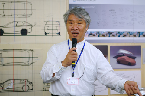 午後からは、B棟大教室に場所を移し、公開講座「クルマは変わる」となりました。会場には、ワークショップに参加した学生、一般の学生に加え、自動車メーカーに勤める現役のデザイナーなど社会人も数多く来場しました。