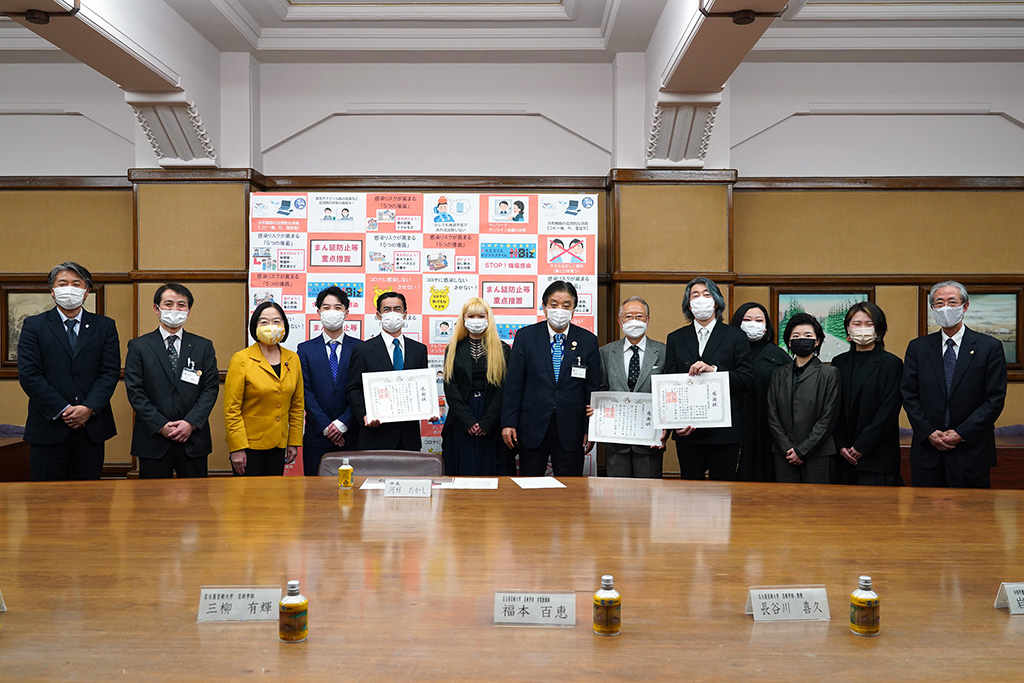 2022年3月18日、名古屋市のストリートピアノへの描画で、日本画コース有志の学生と長谷川喜久 教授、福本百恵 非常勤講師が、感謝状を受領しました。