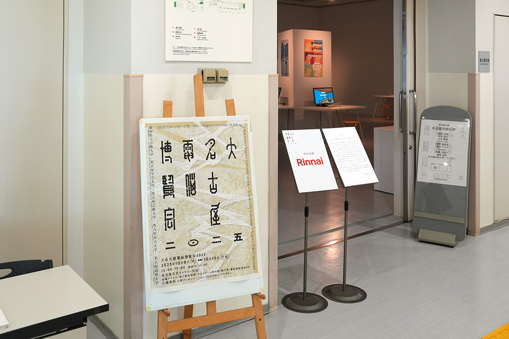 2025年10月8日(水)から13日(月)まで、名古屋市民ギャラリー矢田で開催された「大名古屋電脳博覧会2025」に、名古屋芸術大学のメディア系コースの学生・卒業生が出展しました。本展は、愛知県内の5つの芸術系大学によるメディアに関わるアート・デザインの展覧会で、今回で8回目の開催を迎えます。最新テクノロジーと芸術表現の融合をテーマに、デジタル映像、インタラクティブ・アート、ゲームデザイン、AI、アニメーションなど、幅広いアプローチによる作品が並びました。