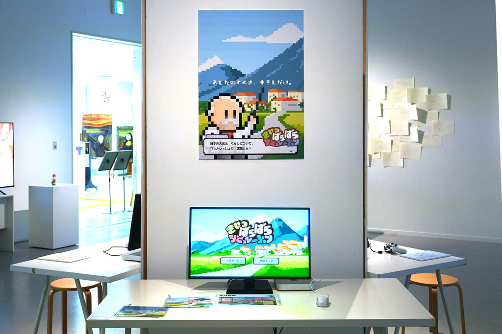 名古屋芸術大学の学生と卒業生は、第2展示室で多彩な11点の作品を出展しました。いずれの作品も「メディア技術を“表現”に昇華する」というテーマのもと、デザイン・映像・アニメーション・ゲームといった異なるメディアを横断しながら、人と情報、そしてテクノロジーの関係性を問いかける内容となっています。