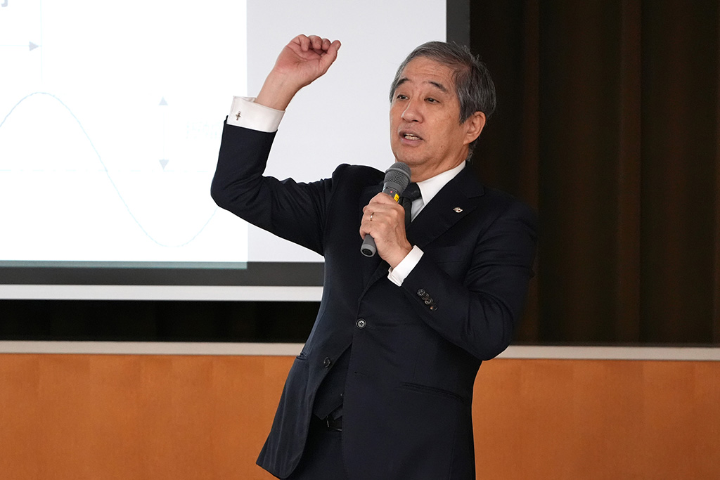 第1回の講師には、名古屋大学総長で宇宙物理学者の杉山直先生を迎え、「光の宇宙と暗黒の宇宙」と題して講演が行われました。講演では、宇宙の誕生から現在までの壮大なストーリーが、専門的な内容も一般向けにわかりやすく紹介されました。