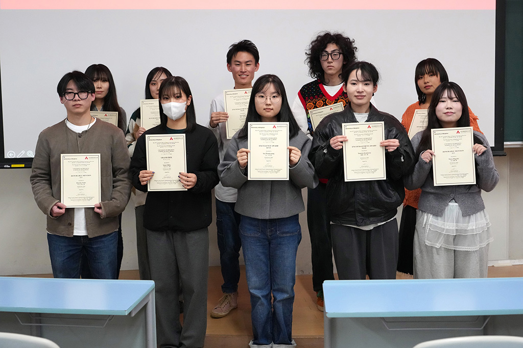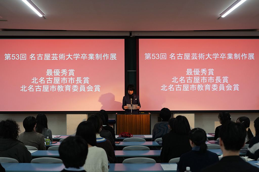 2026年2月20日(金)、西キャンパスB棟大講義室にて、第53回名古屋芸術大学卒業制作展の優秀賞、企業賞、および第29回ブライトン大学賞の発表と授与式を執り行いました。