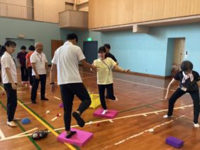 2日目は午前にワークショップが行われ、私は「科学的根拠に基づくインクルーシブな体操実践」というテーマで講師を務め、実際に体を動かしながら理論との結びつきを体感していただきました。