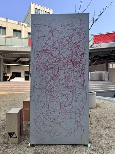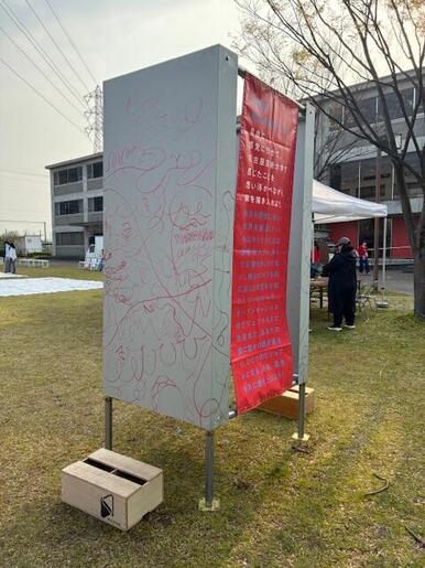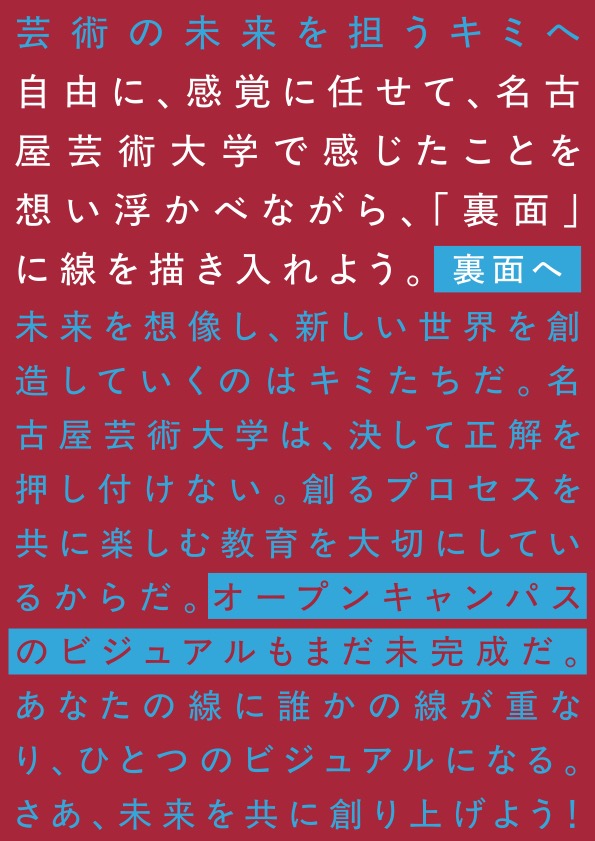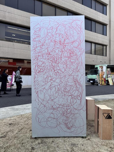 そして、来場してくださった高校生全員に配布された真っ赤なペンと線を描く紙。