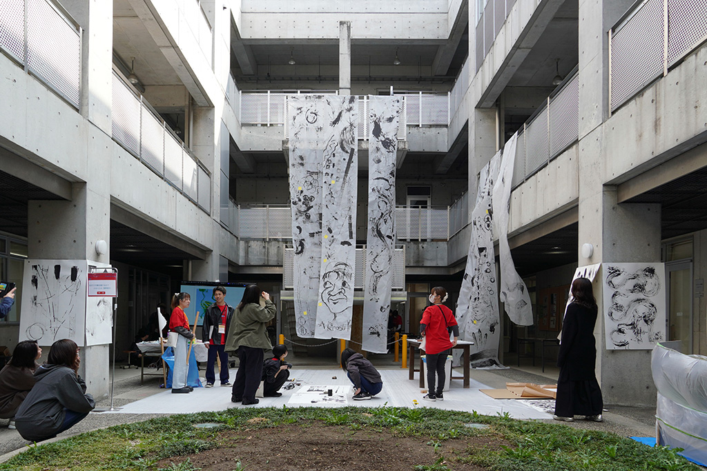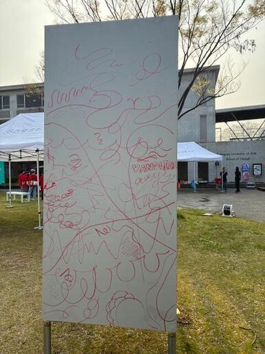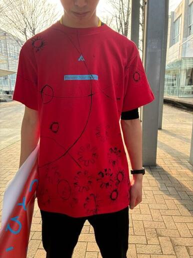 学生がそれぞれ思い思いに線を書き入れるスタッフTシャツ。
