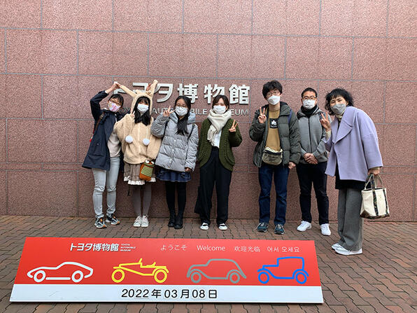 1回目は「トヨタの車が生まれる愛知を巡ろう」ということで、「トヨタ博物館」と「トヨタ産業技術記念館」を訪問しました。たくさんのクラシックカーやそのポスターなどから、生活様式の変化やデザインの歴史などを感じ取り、みんなで「かっこいいー!」と興奮状態でした。トヨタ自動車の発展の歴史は留学生、日本人学生にとっても興味深い内容で、地域の魅力再発見の事業となりました。